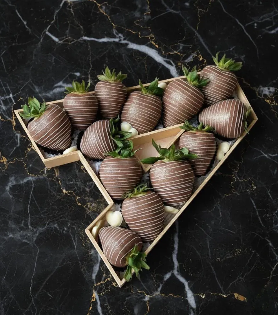 Selección de fresas premium, cuidadosamente seleccionadas y cubiertas con chocolate fino, decoradas artesanalmente y presentadas en una elegante letra. Un detalle exclusivo que combina frescura, calidad y sofisticación, ideal para regalar o compartir.