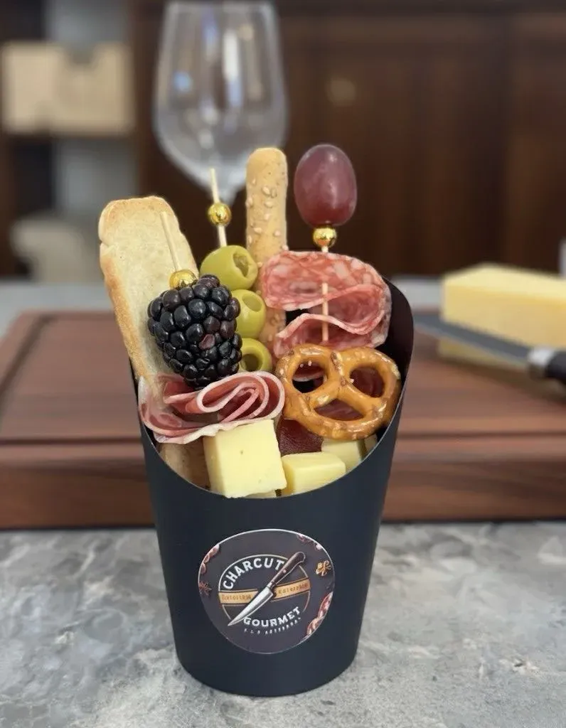 Nuestro Vaso Artesano es una presentación única y práctica de charcutería, perfecta para quienes buscan disfrutar de sabores